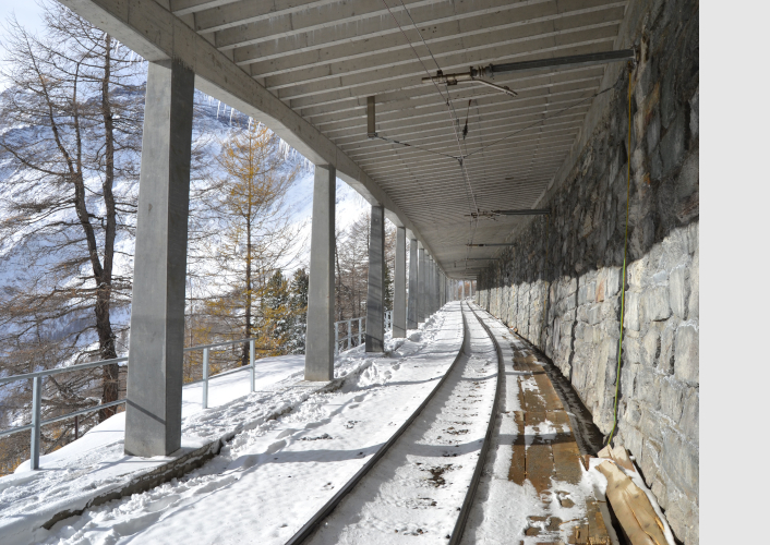 Die auf der UNESCO-Welterbe-Strecke Thusis–Tirano der Rhätischen Bahn, nahe der Station Alp Grüm, auf 2100 m ü.M. liegenden Galerien Grüm, Palü sopra und Palü hatten ihr Lebensende erreicht. Sie waren in den Jahren 1949/50 in leichter, vorfabrizierter Betonbauweise als Schnee- und Lawinenschutz erstellt worden. Schadhafter Zustand und ungenügende Tragsicherheit führten zum Entscheid, die Galerien zu ersetzen. Es ist gelungen, mit sensibel entworfenen Ersatzbauten nicht nur die zeitgemässen Anforderungen betreffend Lichtraumprofil, Lawinen- und Anprallsicherheit zu erfüllen, sondern auch denkmalpflegerische Aspekte in das Tragwerkskonzept einzubeziehen. Die Form des gesamten Tragwerks sowie seiner Bestandteile wurde konsequent auf den Verlauf der inneren Kräfte abgestimmt. So liessen sich, trotz der hohen statischen Anforderungen, äusserst filigrane Galerien realisieren, welche sich zeitlos und schön in die Landschaft einordnen.